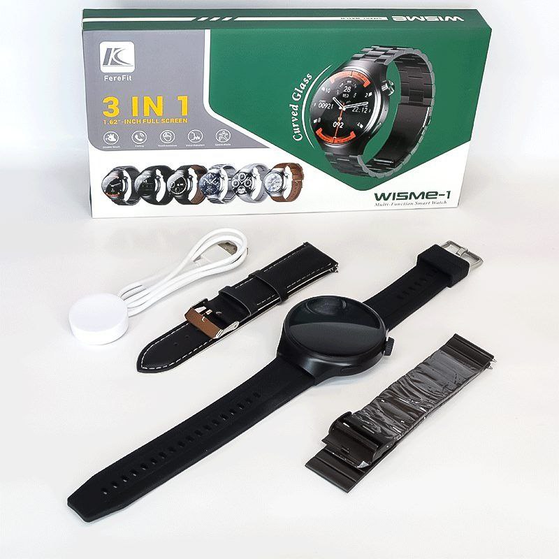 دارای 1 عدد ساعت صفحه گرد و 2 بند سیلیکونی و 1 بند فلزی.