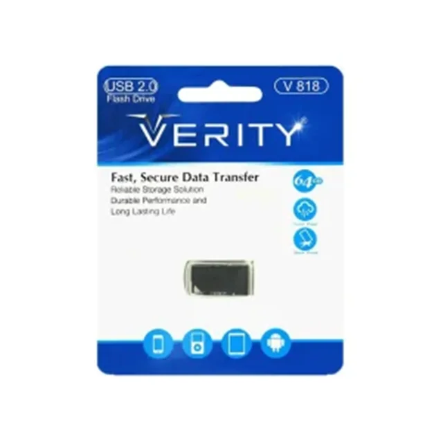 فلش وریتی VERITY V818 64GB یک فلش مموری با کیفیت مناسب از شرکت وریتی است. این فلش مموری با ظرفیت 64 خود قابلیت ذخیره سازی بیشتر از 4000آهنگ با کیفیت را دارد، همچنین اگر جزو آن دسته از افراد هستید که عاشق تماشای فیلم ها و سریال های روز دنیا هستید، می توانید چیزی بیش از 30فیلم را با کیفیت مناسب درون این فلش مموری جای دهید. به علاوه با پیشرفت تکنولوژی و به بازار آمدن فلش مموری های با ظرفیت بالاتر دیگر فلش های 16گیگ و پایین تر صرفه اقتصادی ندارند و اختلاف قیمت بسیار کمی با نوع 64گیگی خود دارند، به همین دلیل تهیه یک فلش مموری 64 گیگی مانند فلش وریتی VERITY V818 64GB یک گزینه اقتصادی و به صرفه به نظر می رسد. فلش وریتی VERITY V818 64GB با بدنه فلزی خود در برابر بسیاری از ضربه ها مقاوم است، به همین دلیل می تواند یک همراه خود در فضاهای باز و آزاد برای شما باشد. همچنین این فلش مموری دارای یک سری USB 2.0 است که اطلاعات را باسرعت مناسبی انتقال می دهد.
